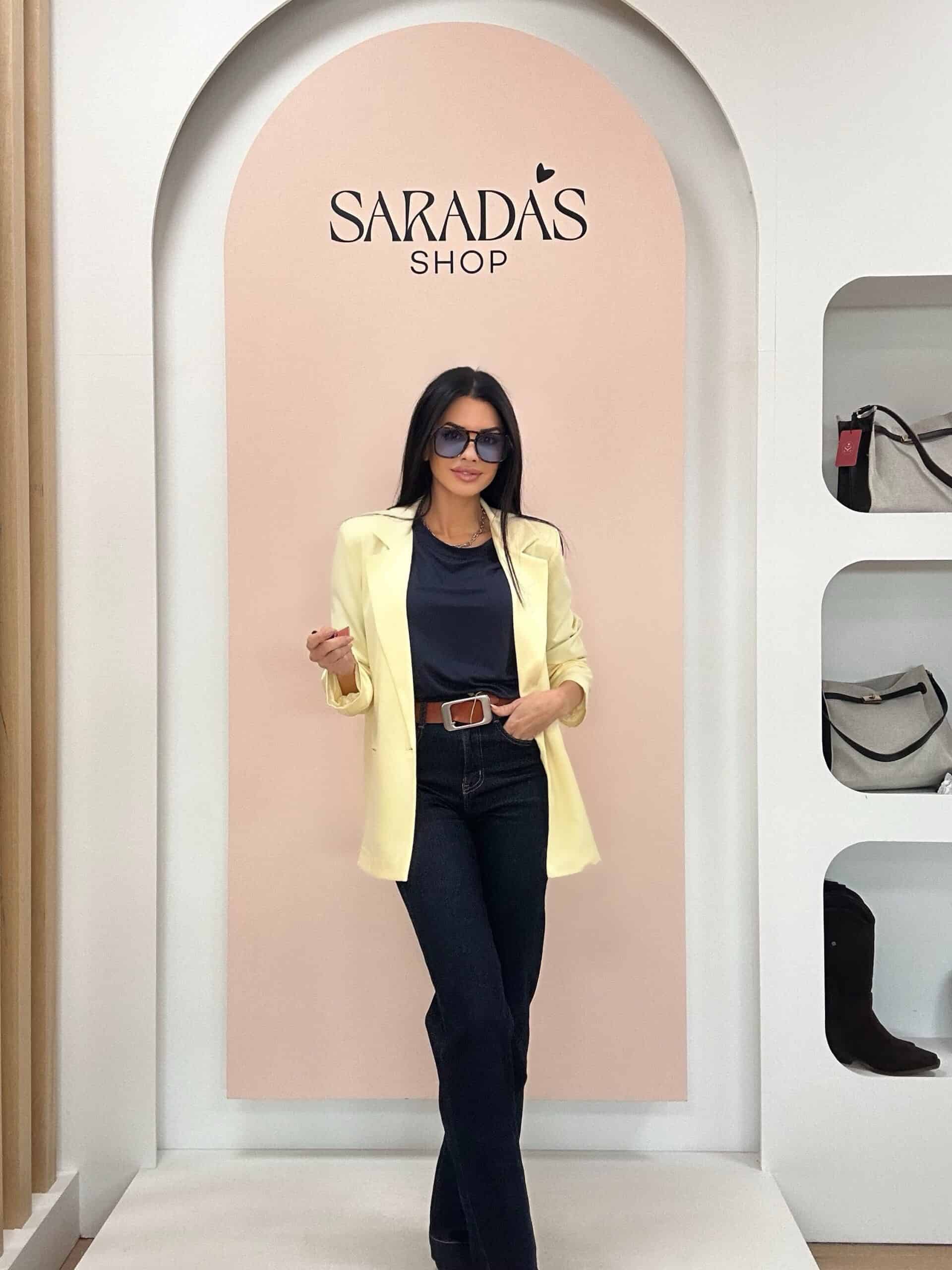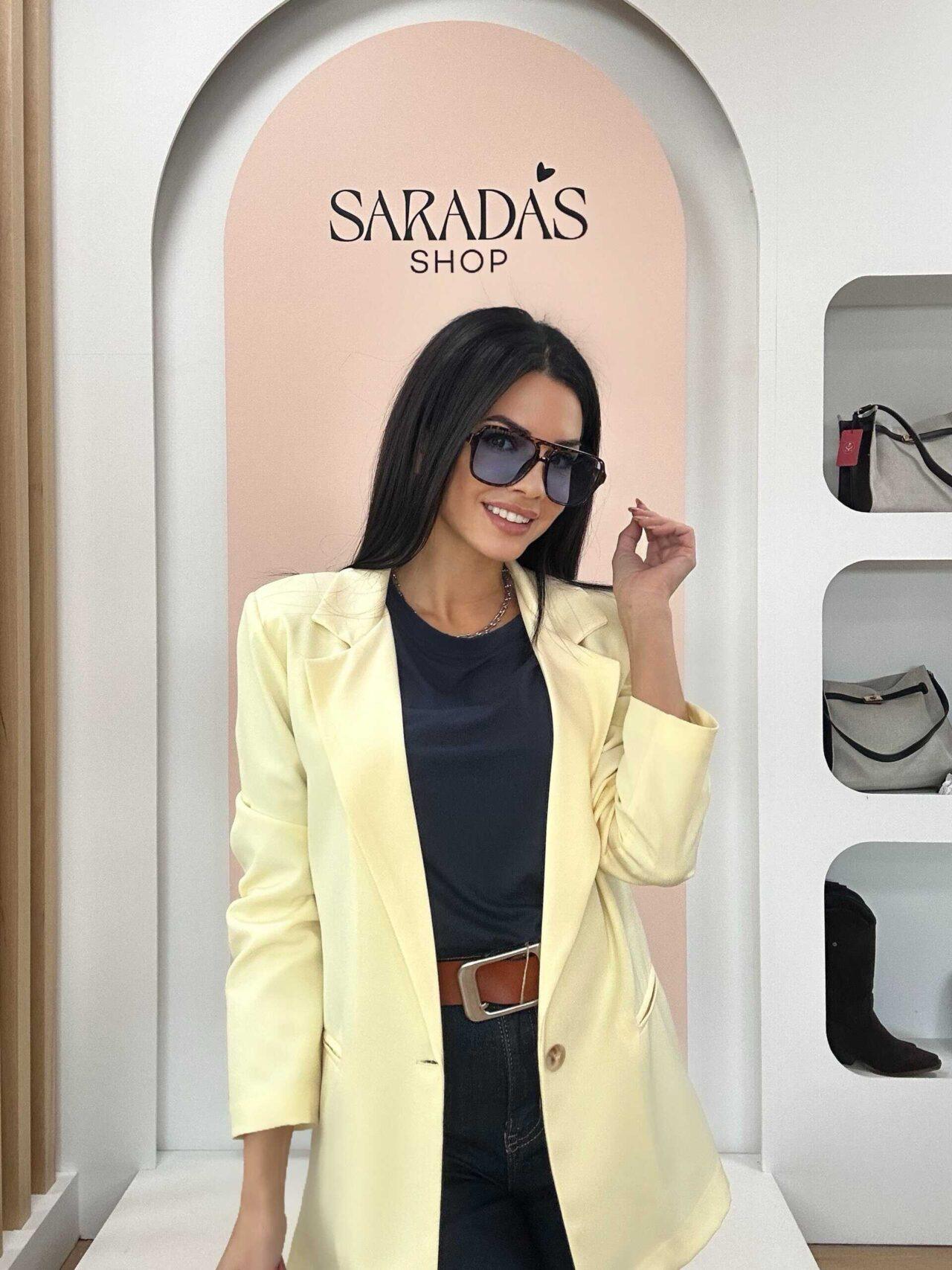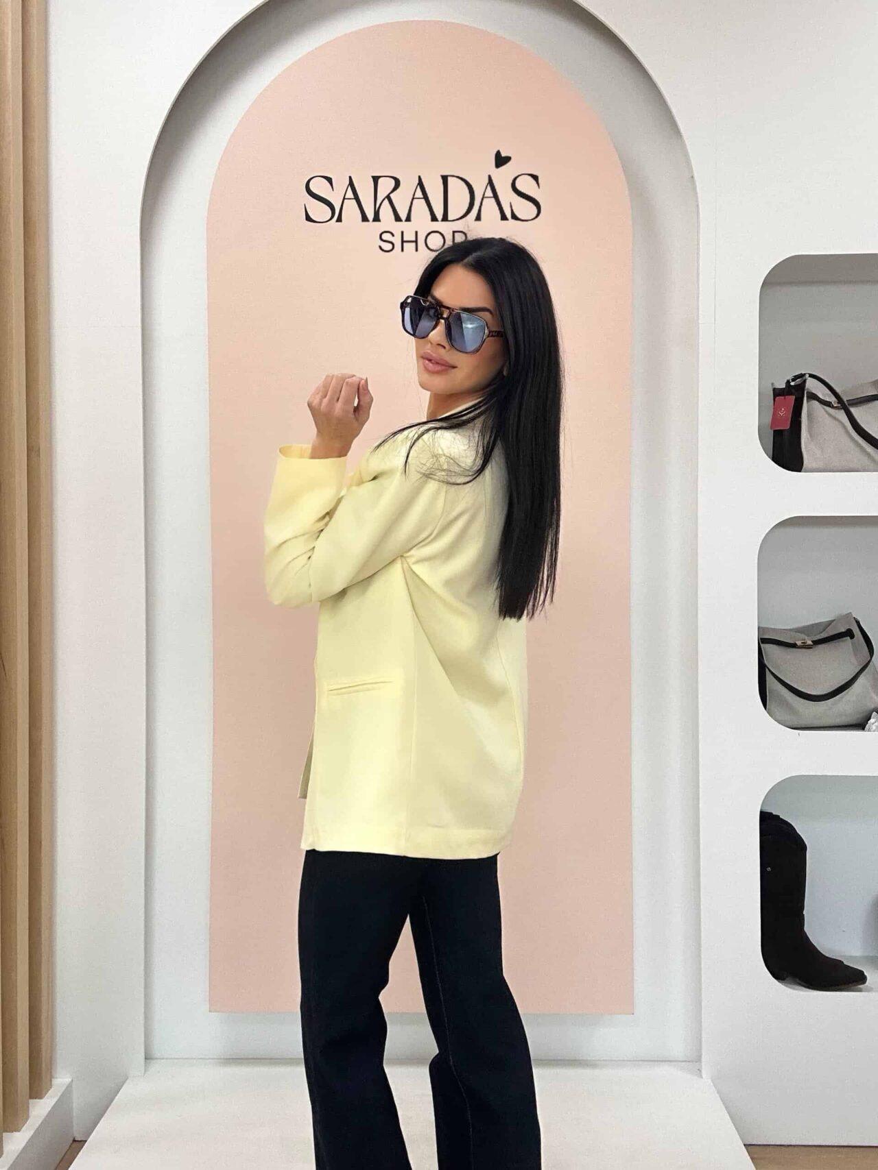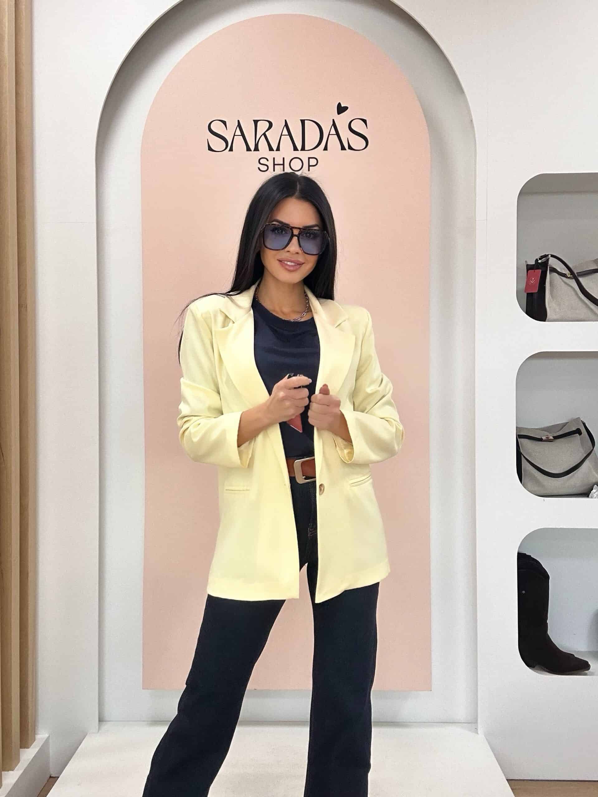 Blazer en color amarillo pastel, cuello en solapa, cierre de botón con ojal, falsos bolsillos laterales, corte recto, hombreras, totalmente forrada. Diseño Italiano. Elige tu talla: S/34-36, M/38, L/40 96%Poliéster. 4%Elastano.