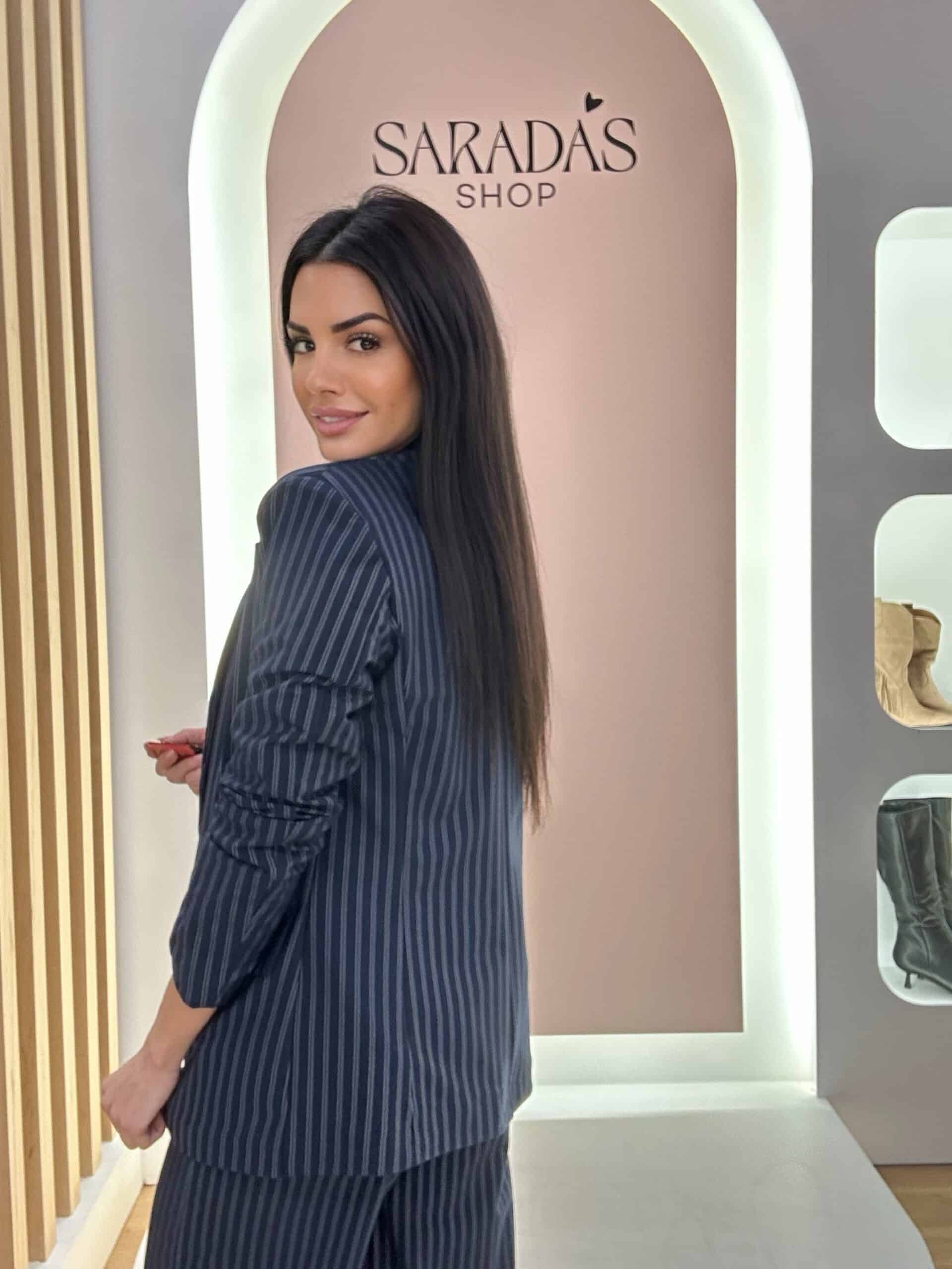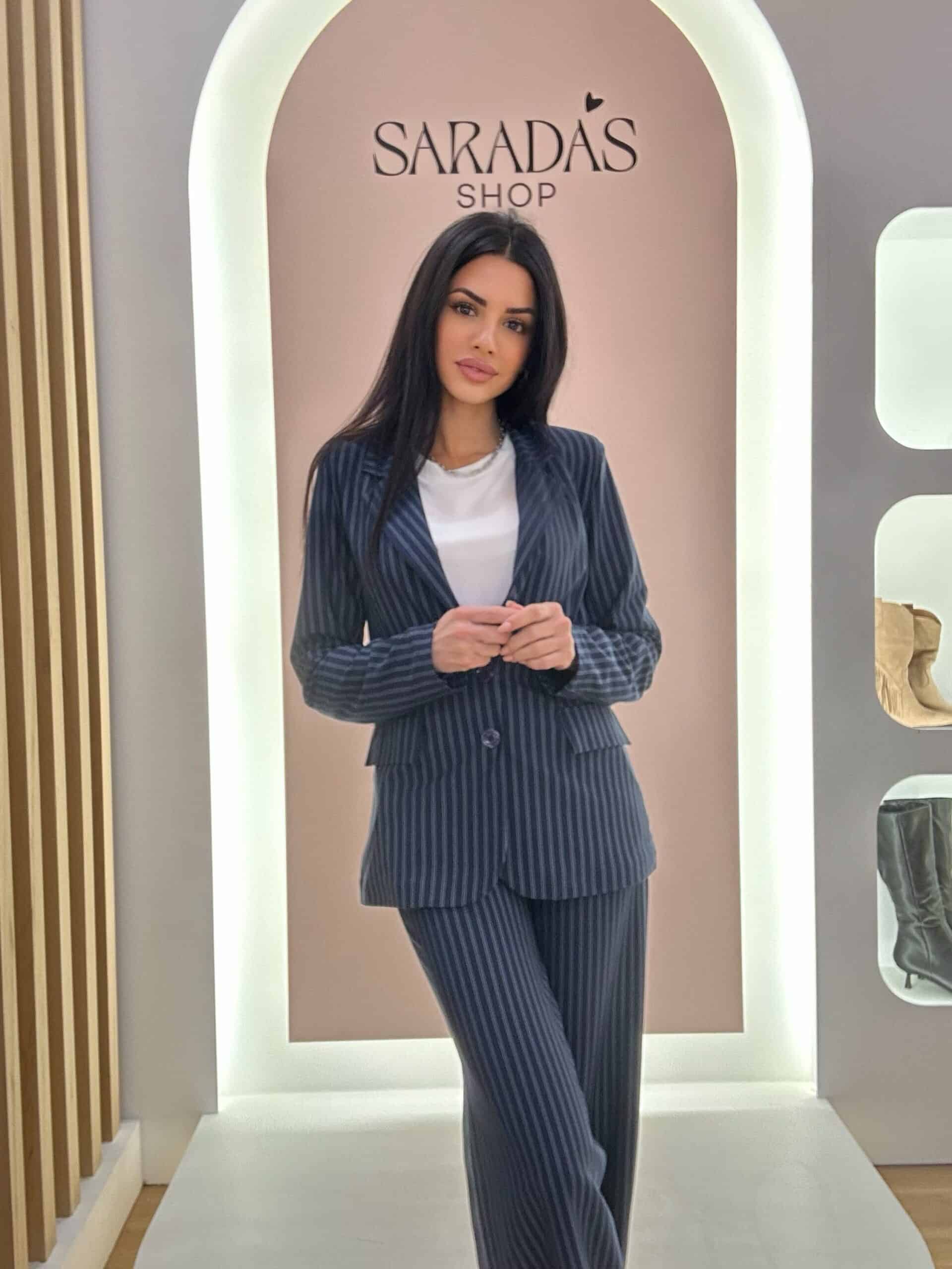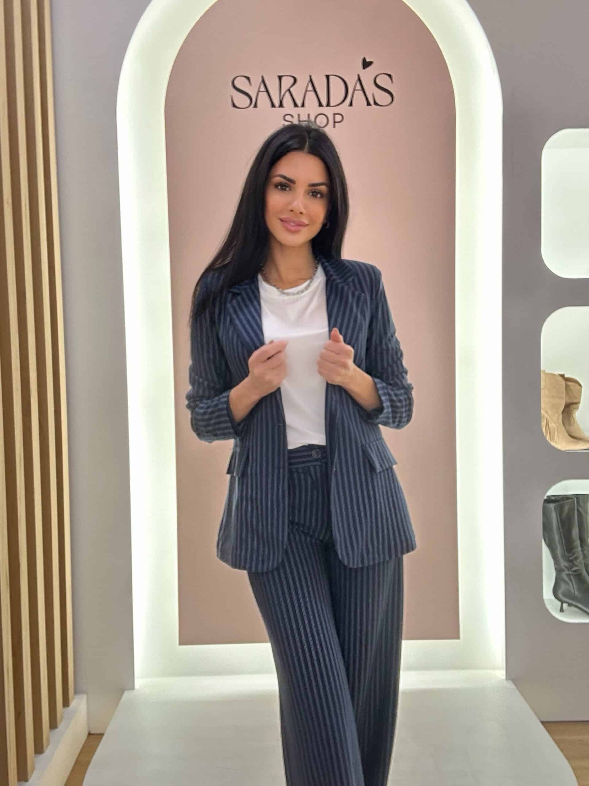 Blazer en color azul marino con doble raya diplomática en blanco, cuello en solapa, falsos bolsillos con solapa laterales , cierre con dos botones de cierre con ojal, corte recto, totalmente forrada. Diseño Italiano. Elige tu talla: S/36,  M/38, L/40  45%Viscosa. 25%Poliéster. 24%Nylon. 5%Elastano.