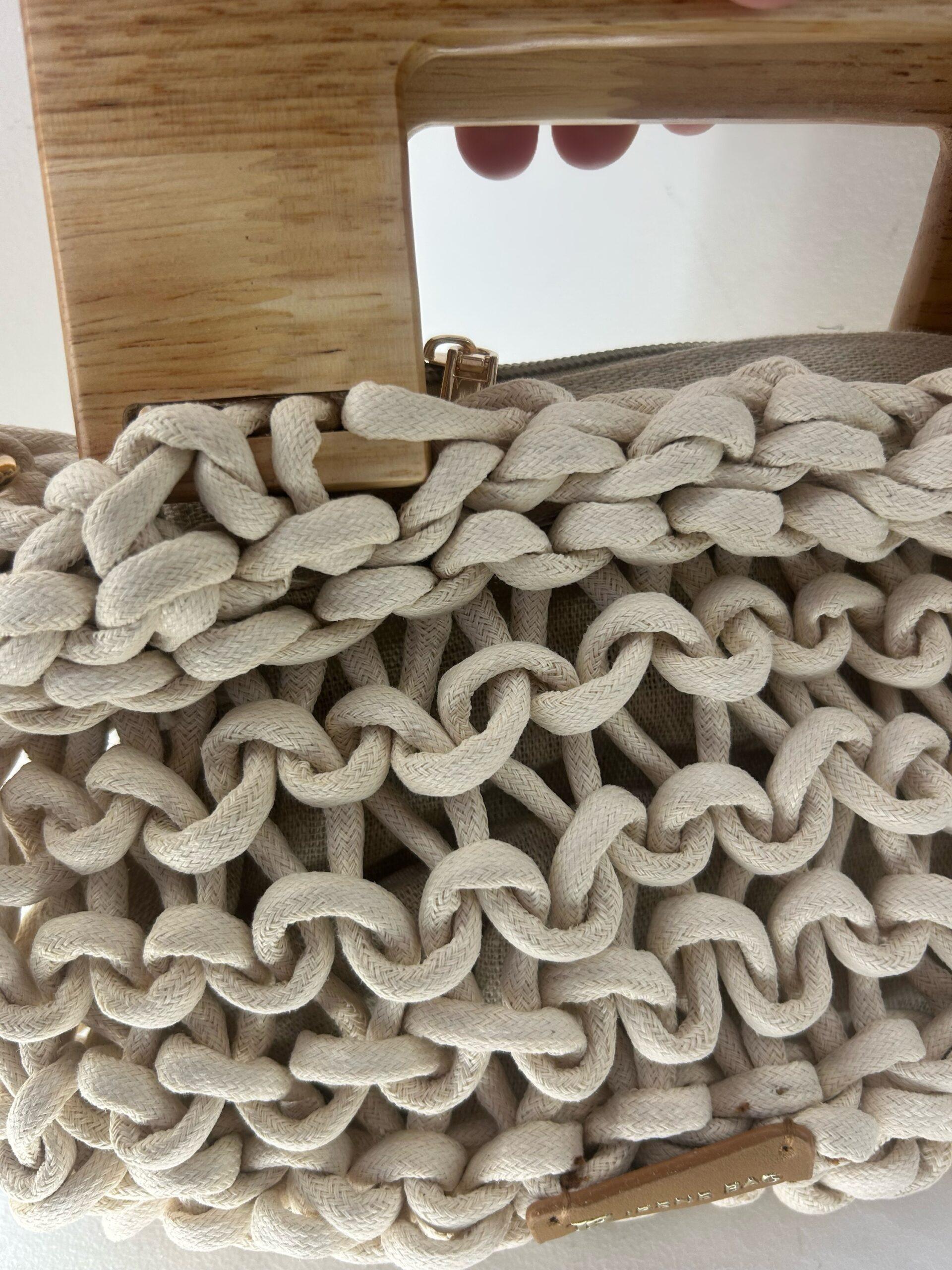 Bolsos cuerda en crema con detalle de asa en madera.