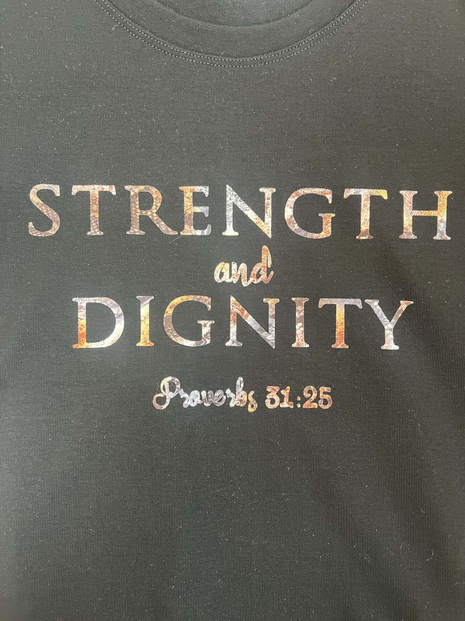 Camiseta de algodón, en manga corta, de color negro, cuello redondo y detalle de letras . Elige tu talla: S/M(34/36), M/L(38/40) 95%Algodón.5%Elastano.