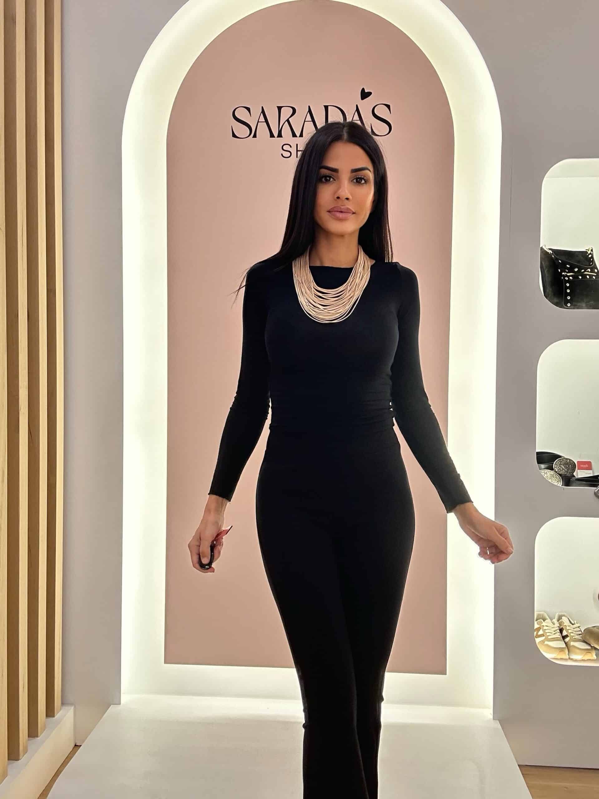 Collar de varias cuerdas en polipiel de color beige, detalle de cierre magnético en color plateado