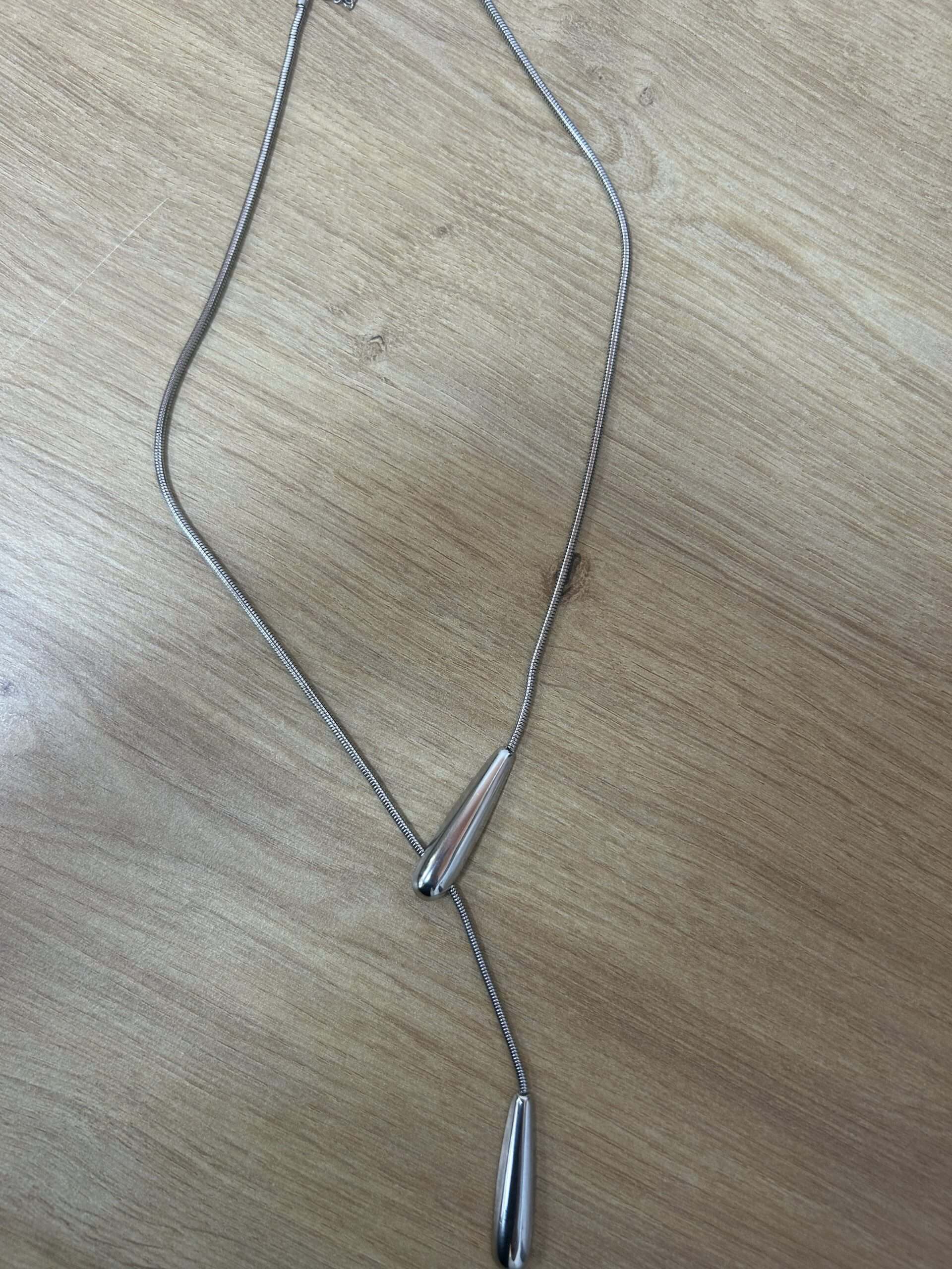 Collar de serpiente, con detalle de de lagrima fija y que cuelga, cierre de mosquetón. Acero.