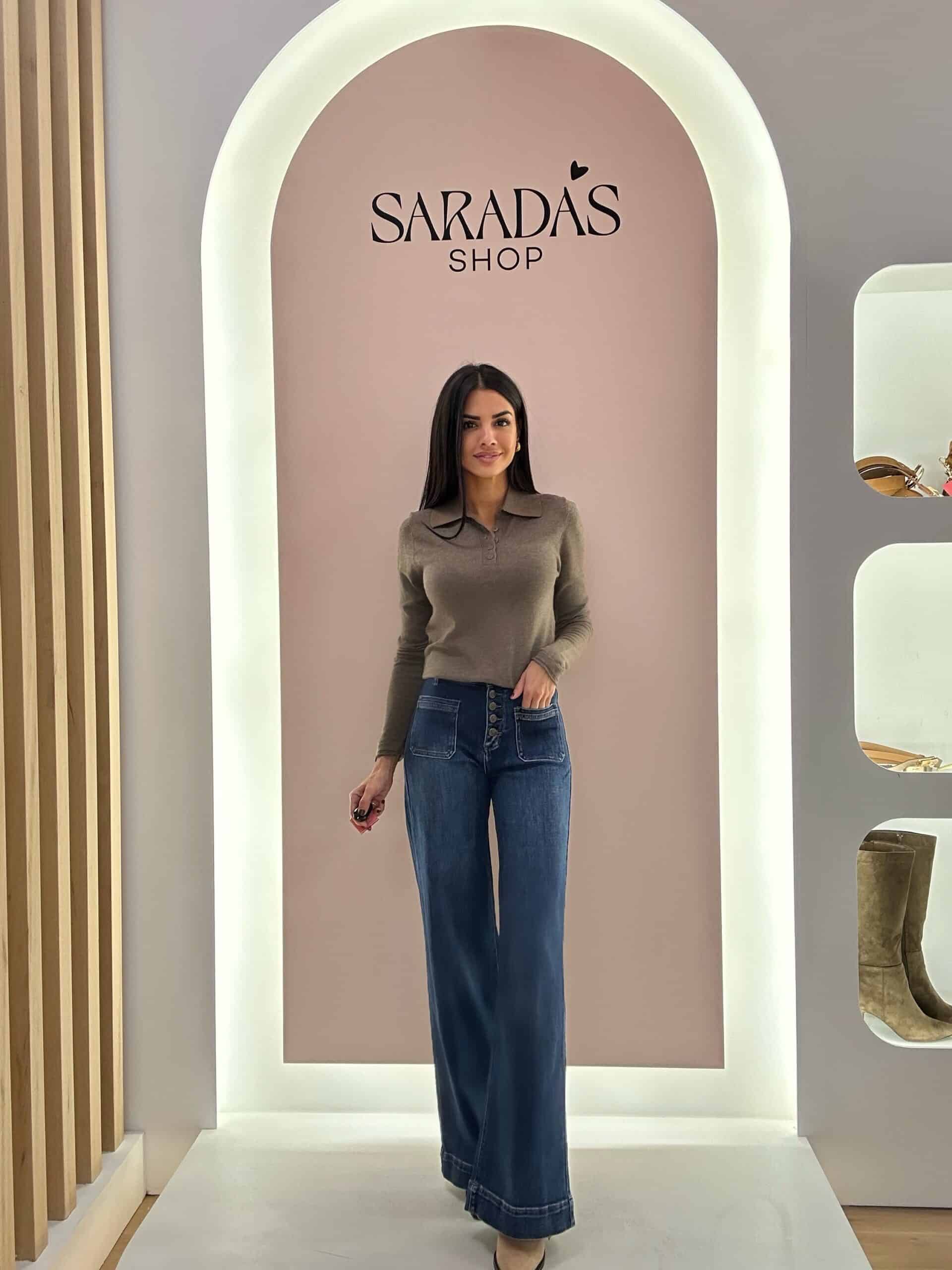 Pantalón denim en color azul, corte wide leg, tiro medio, cierre con botones en color plateado, detalle de vuelta en el bajo y bolsillos cuadrados. Contiene elastano.