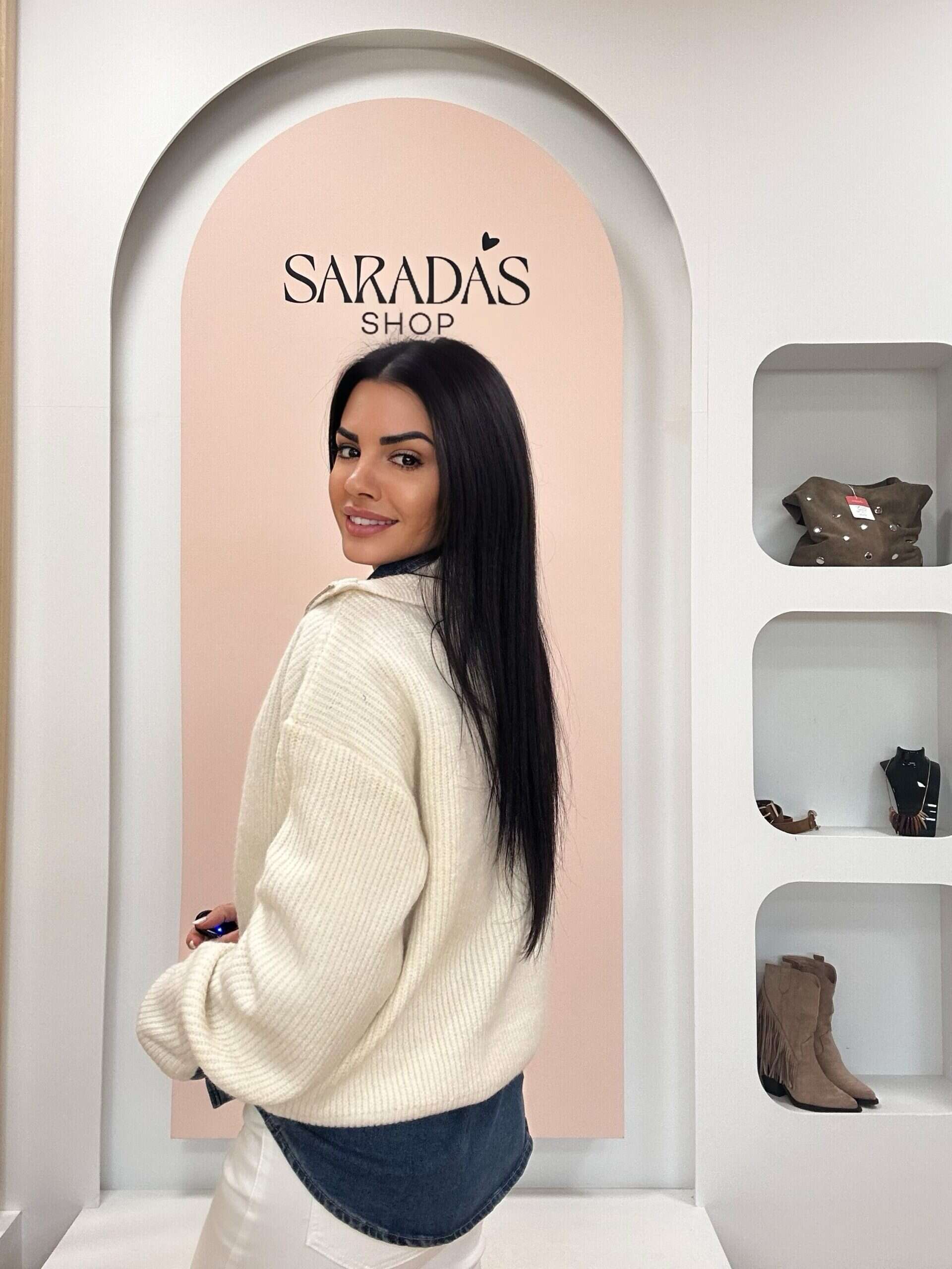 Sisa: 56cm. (sin estirar), largo desde la sisa: 33cm.