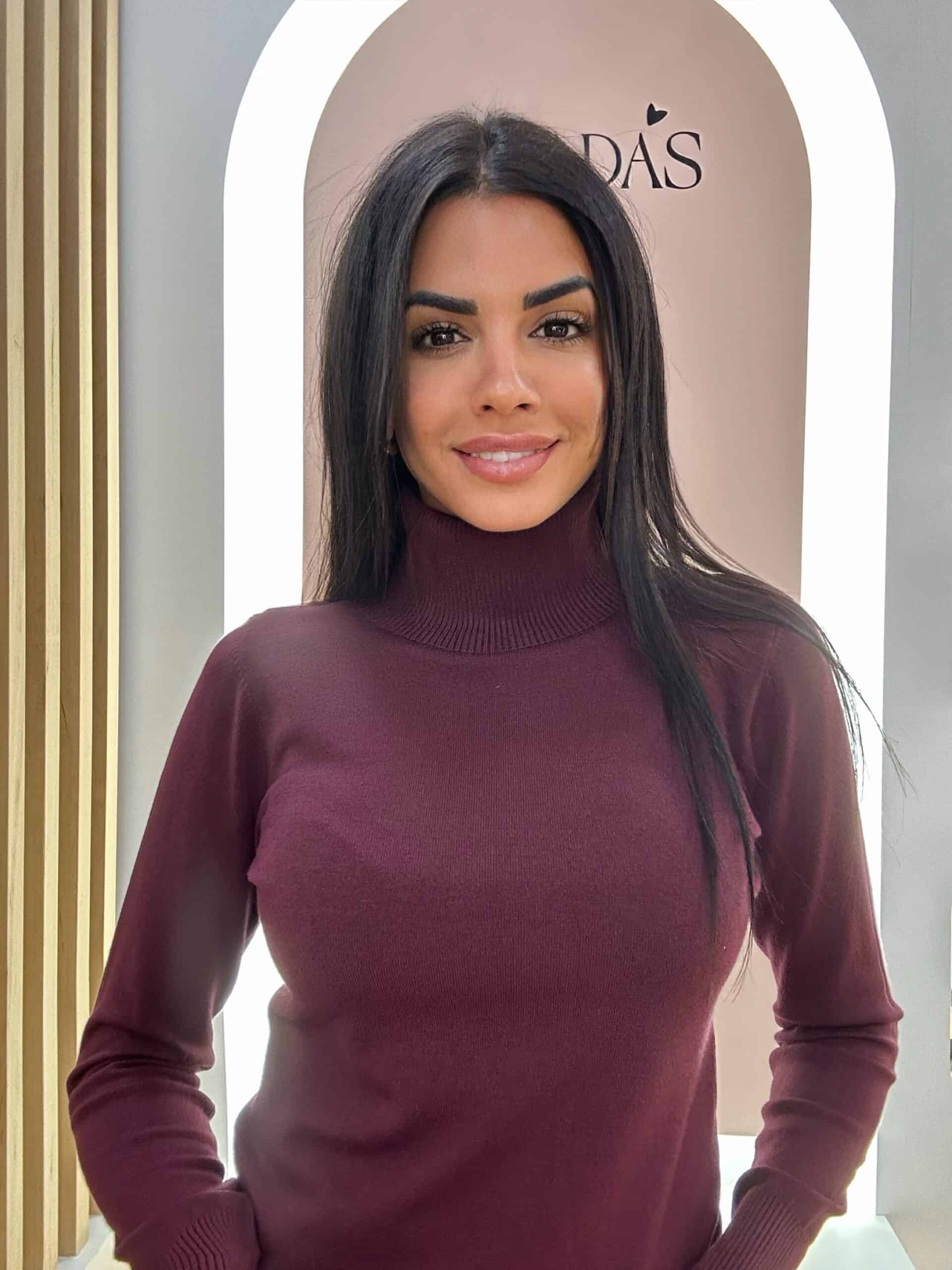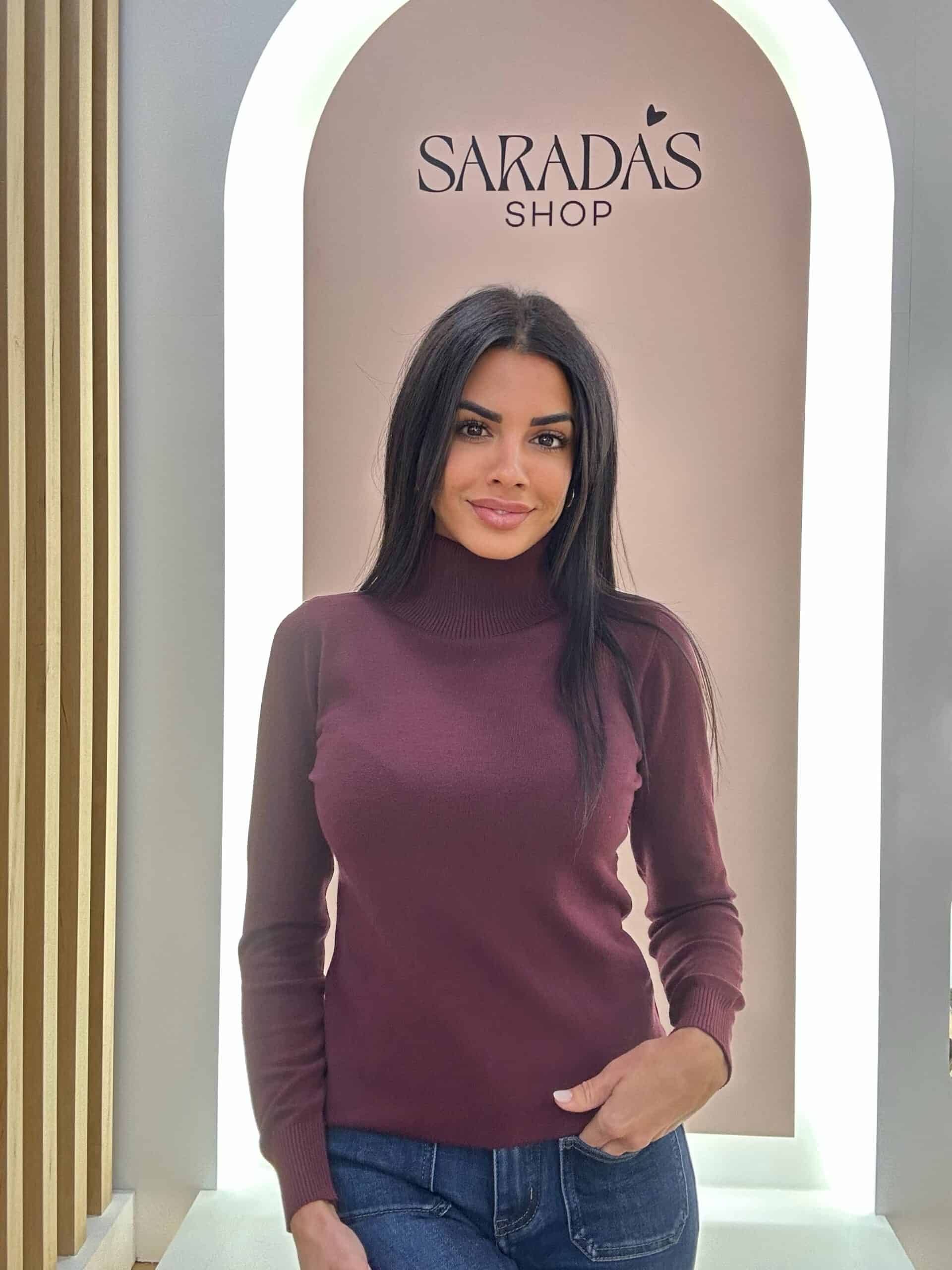 Jersey en punto elástico, de color burdeos, cuello vuelto, detalle de Canalé en cuello, puños y bajo. Talla única (S/M/L) Medidas que te pueden interesar: Sisa: 41cm. (sin estirar), largo desde la sisa:41cm. 50%Viscosa. 22%Poliamida. 28%Poliéster.