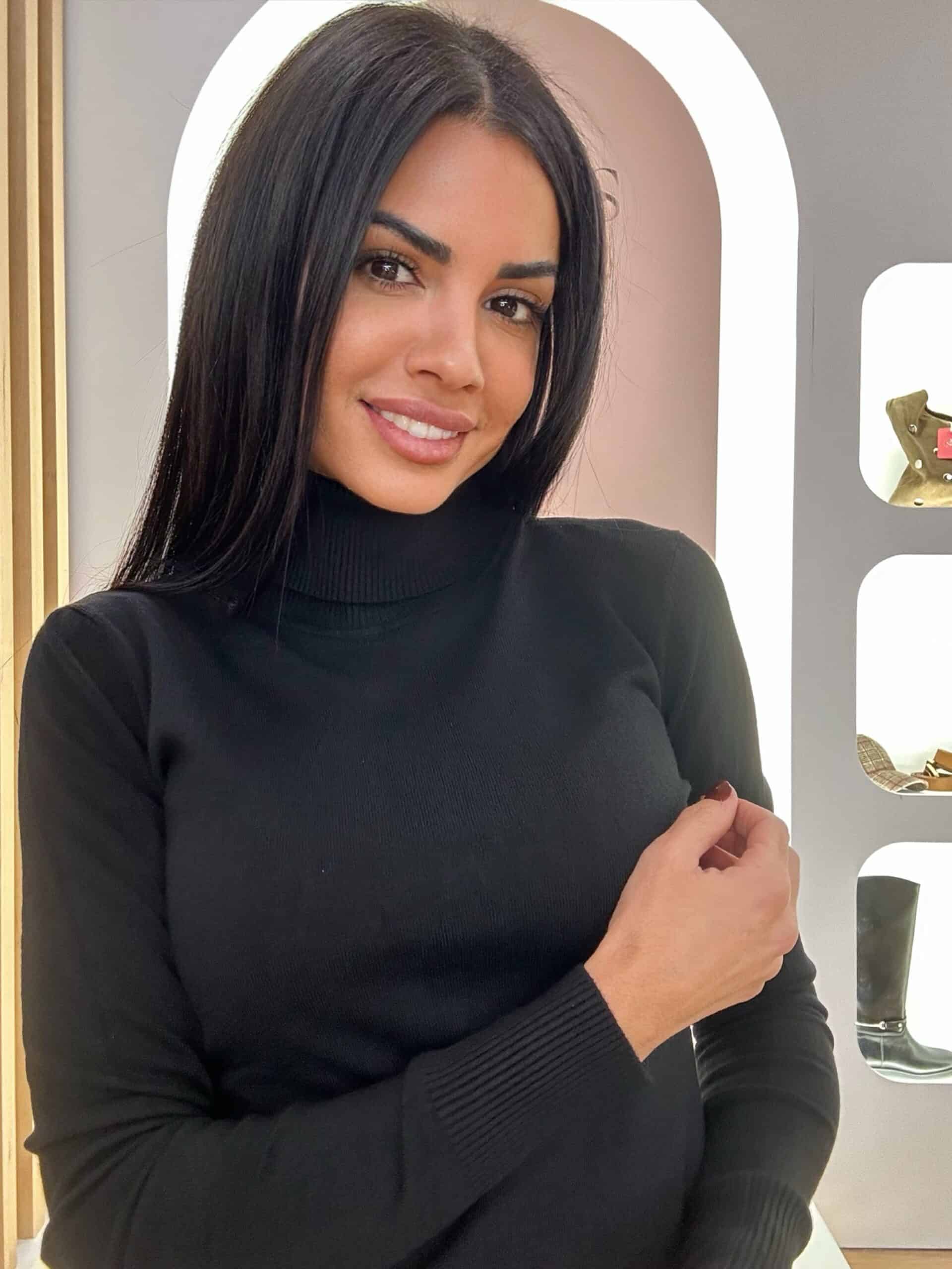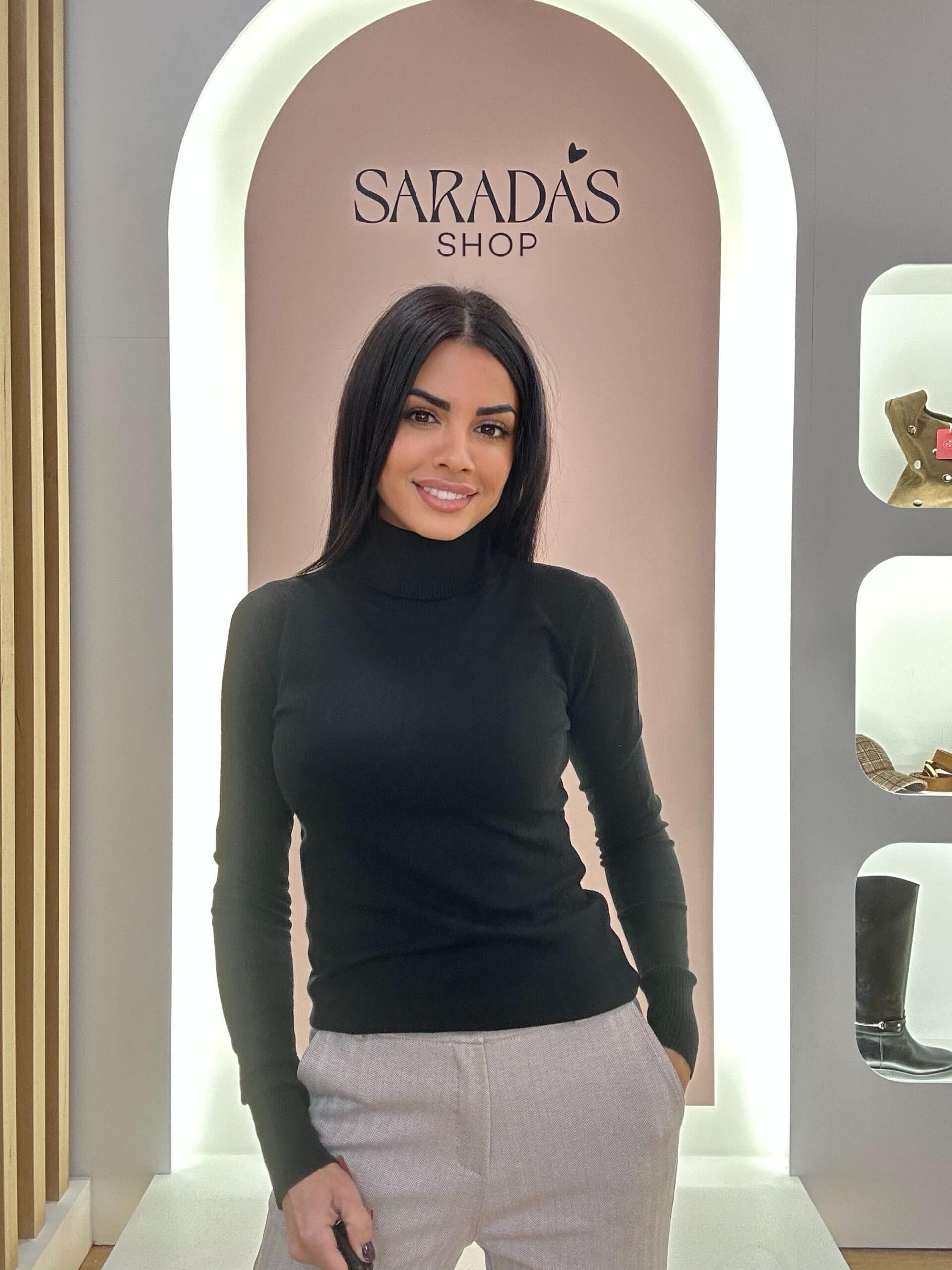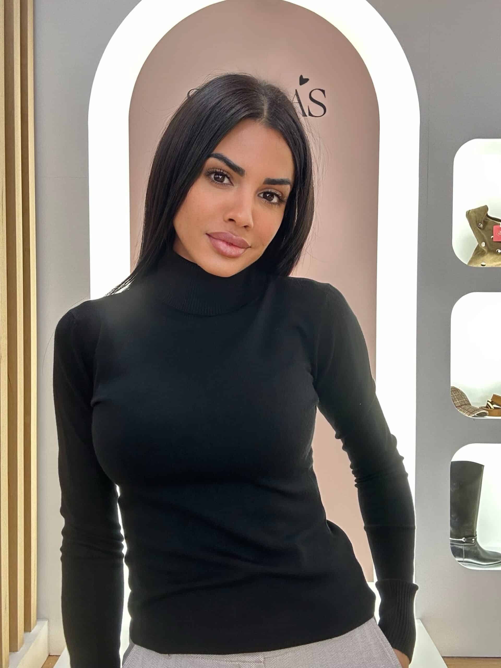 Jersey en punto elástico, de color negro, cuello vuelto, detalle de Canalé en cuello, puños y bajo. Talla única (S/M/L) Medidas que te pueden interesar: Sisa: 41cm. (sin estirar), largo desde la sisa:41cm. 50%Viscosa. 22%Poliamida. 28%Poliéster.