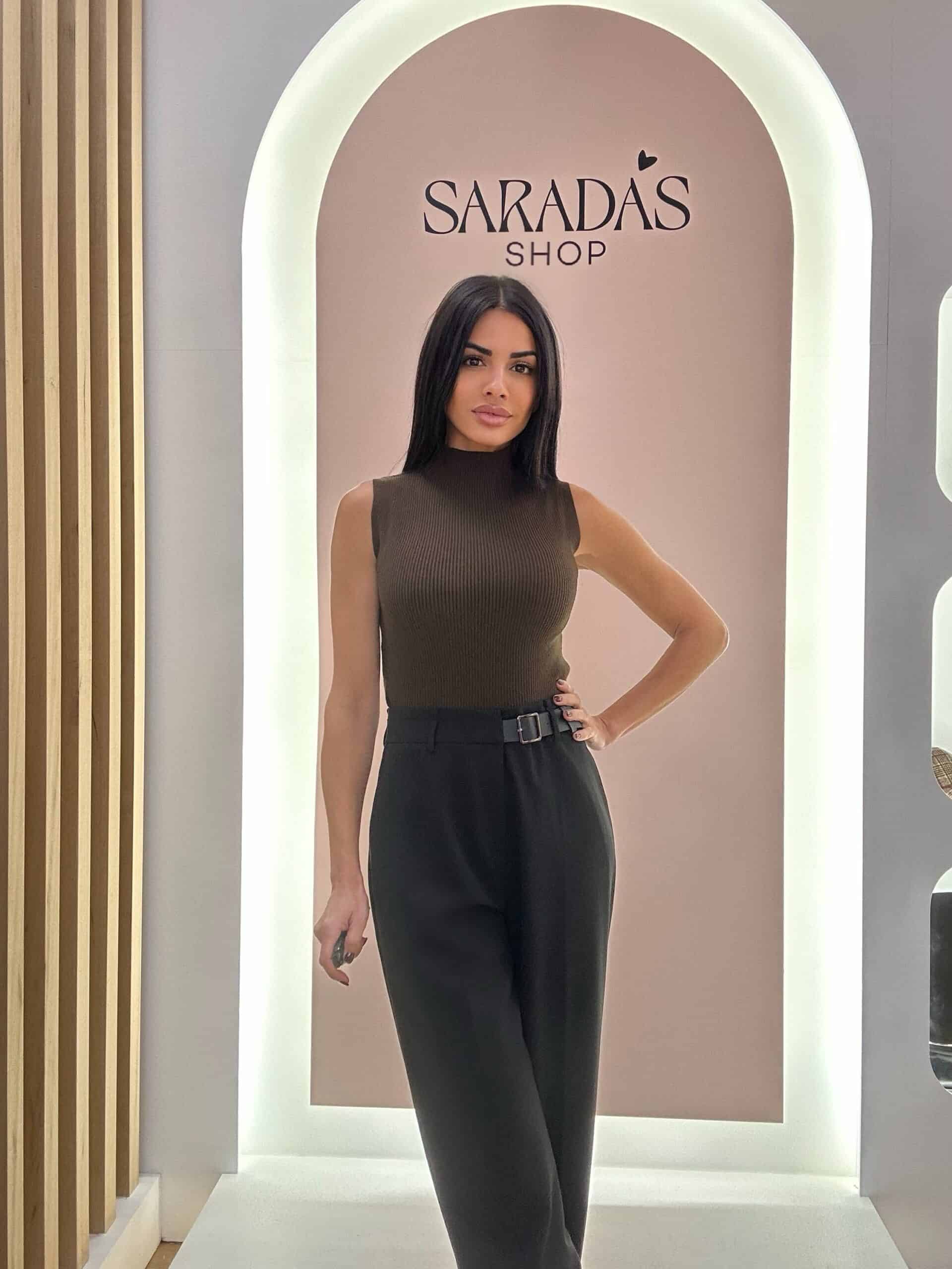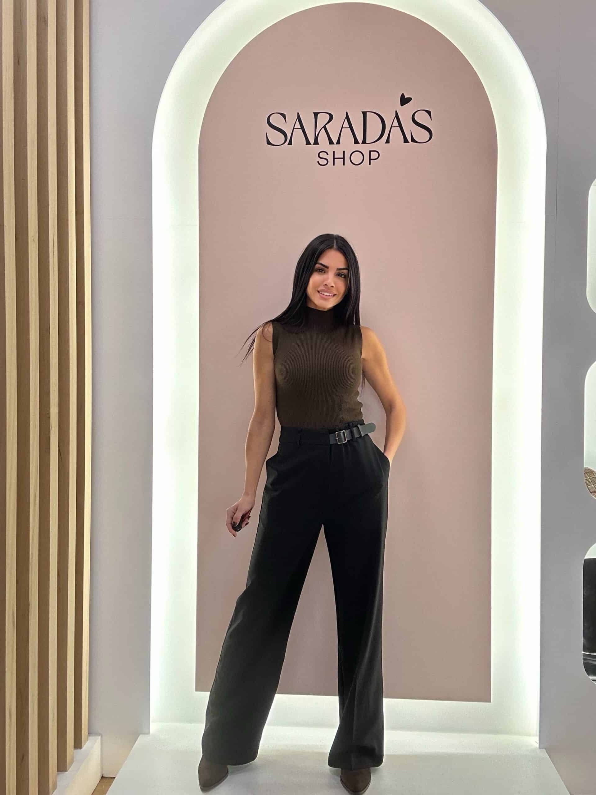 Pantalón largo de vestir, en color negro ,cinturilla alta con cierre de clic cremallera y detalle de cinturón integrado con hebilla regulable, en color negro, bolsillos laterales, pinzas traseras, corte recto.