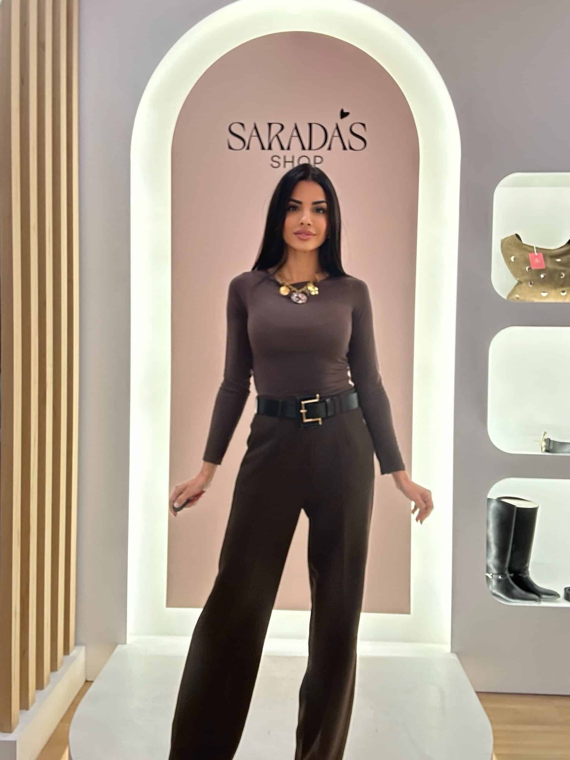 Pantalón largo de vestir, en color marrón chocolate,cinturilla de cierre con botón y cremallera, bolsillos laterales, pinzas, corte recto. Incluye cinturón. Elige tu talla: Talla habitual, S/36, M/38, L/40 100%Poliéster.