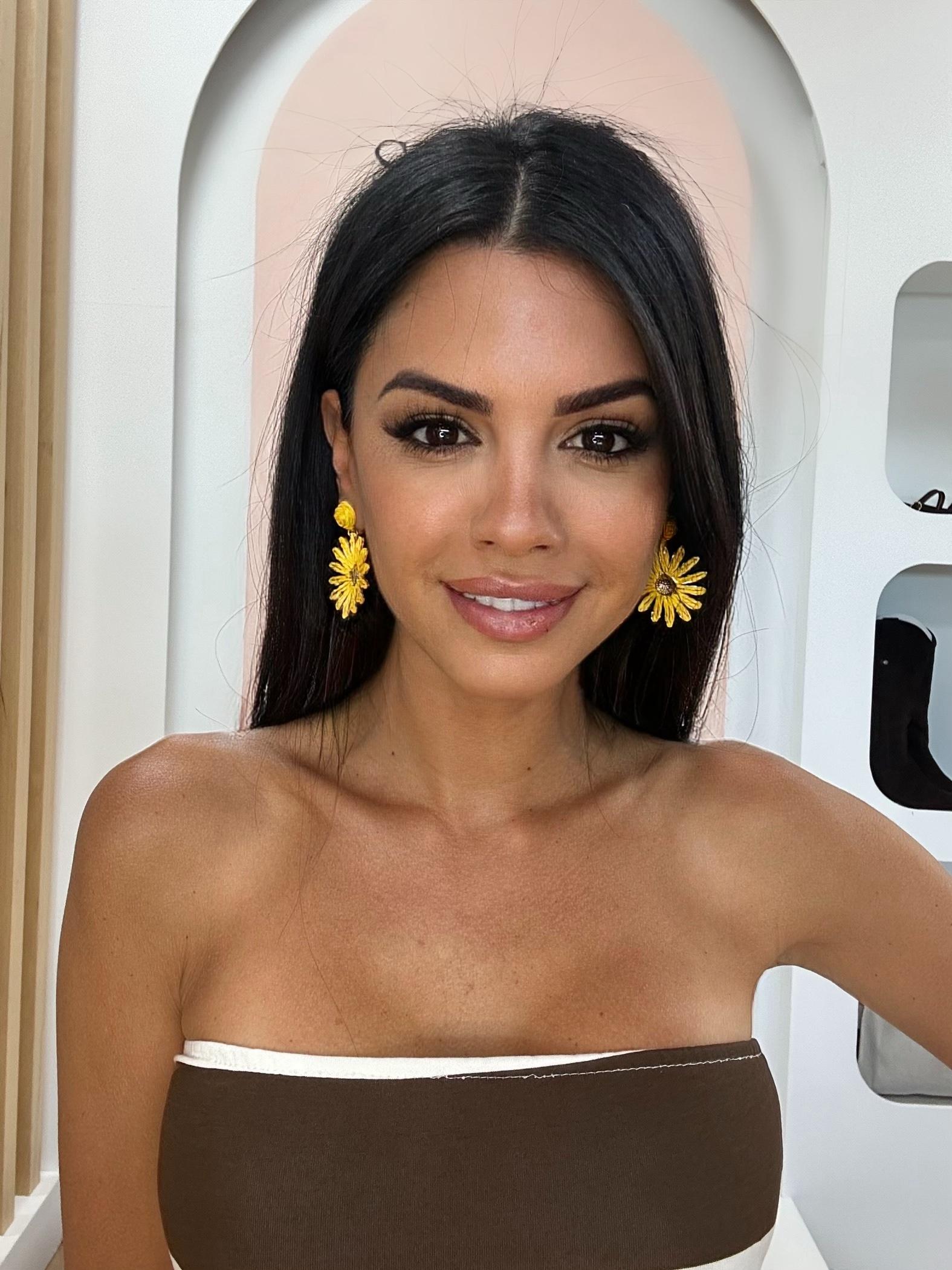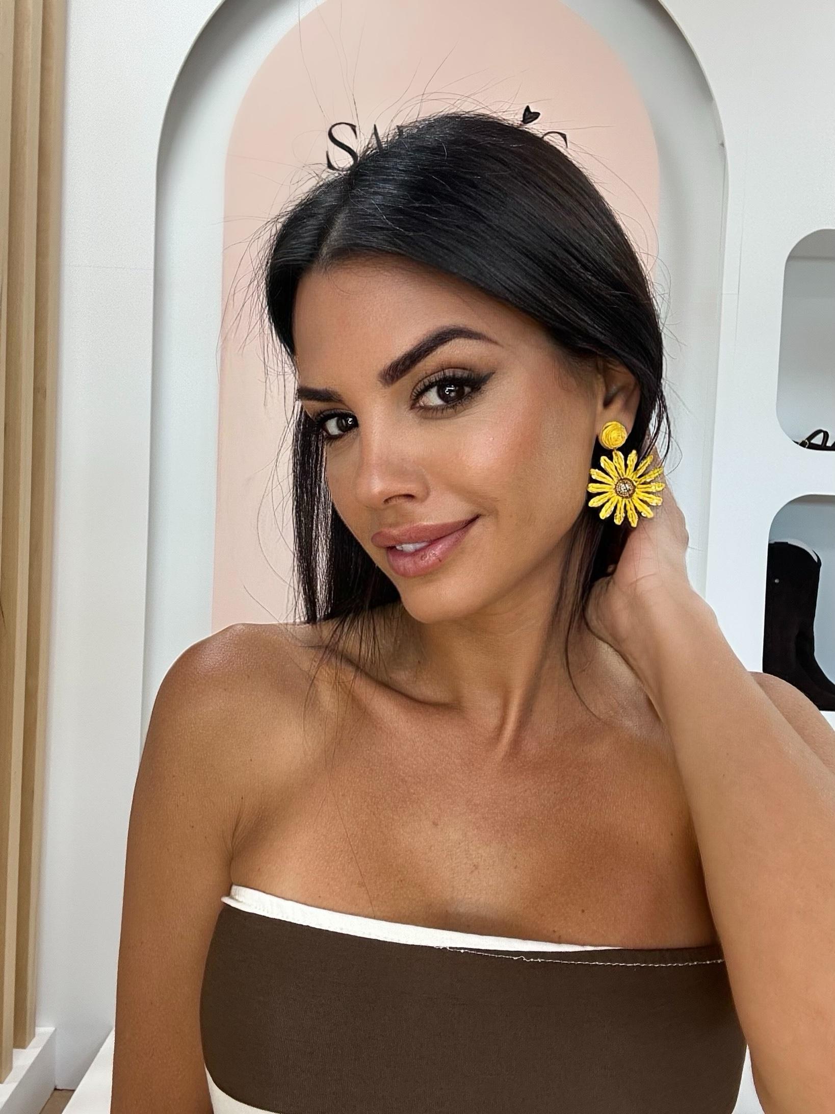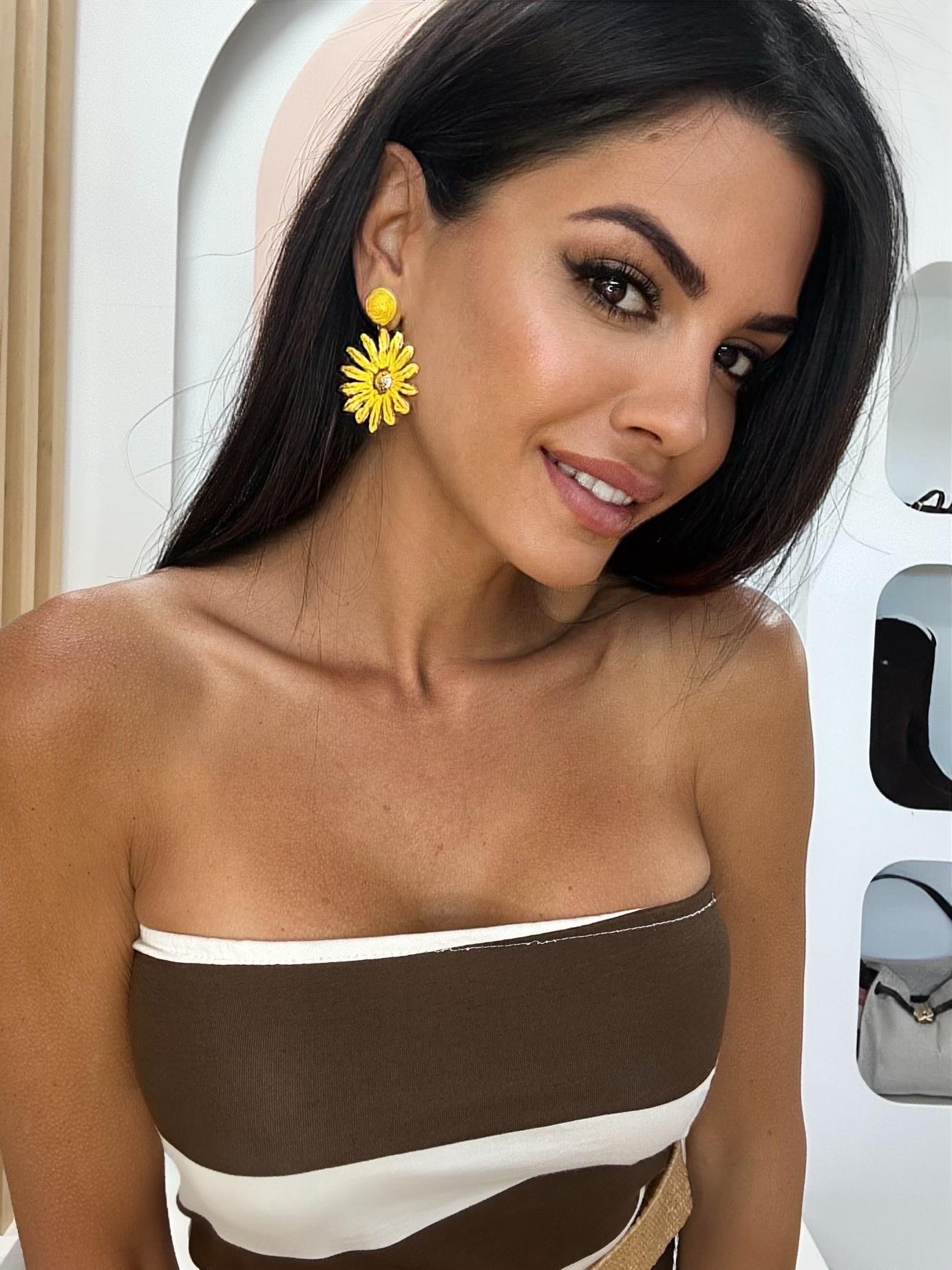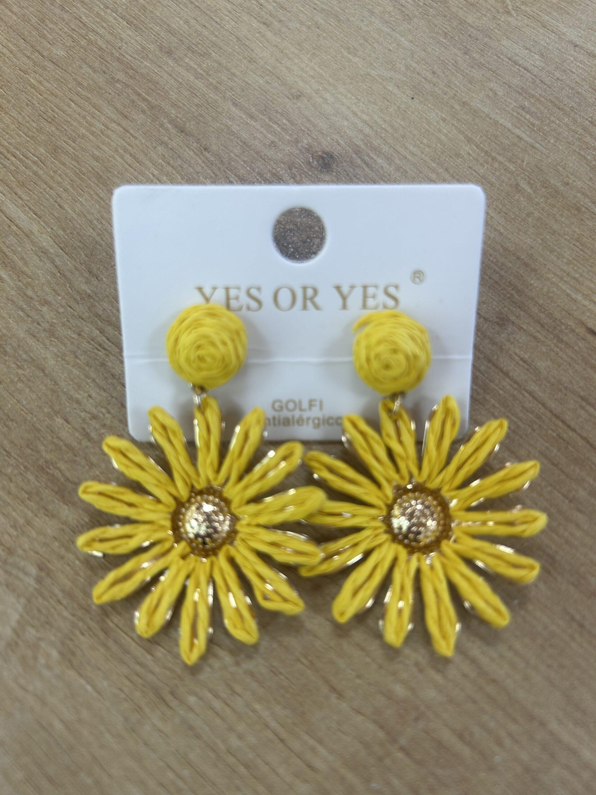 Pendiente de flor en papel de color amarillo. Golfi antialérgico. Papel.