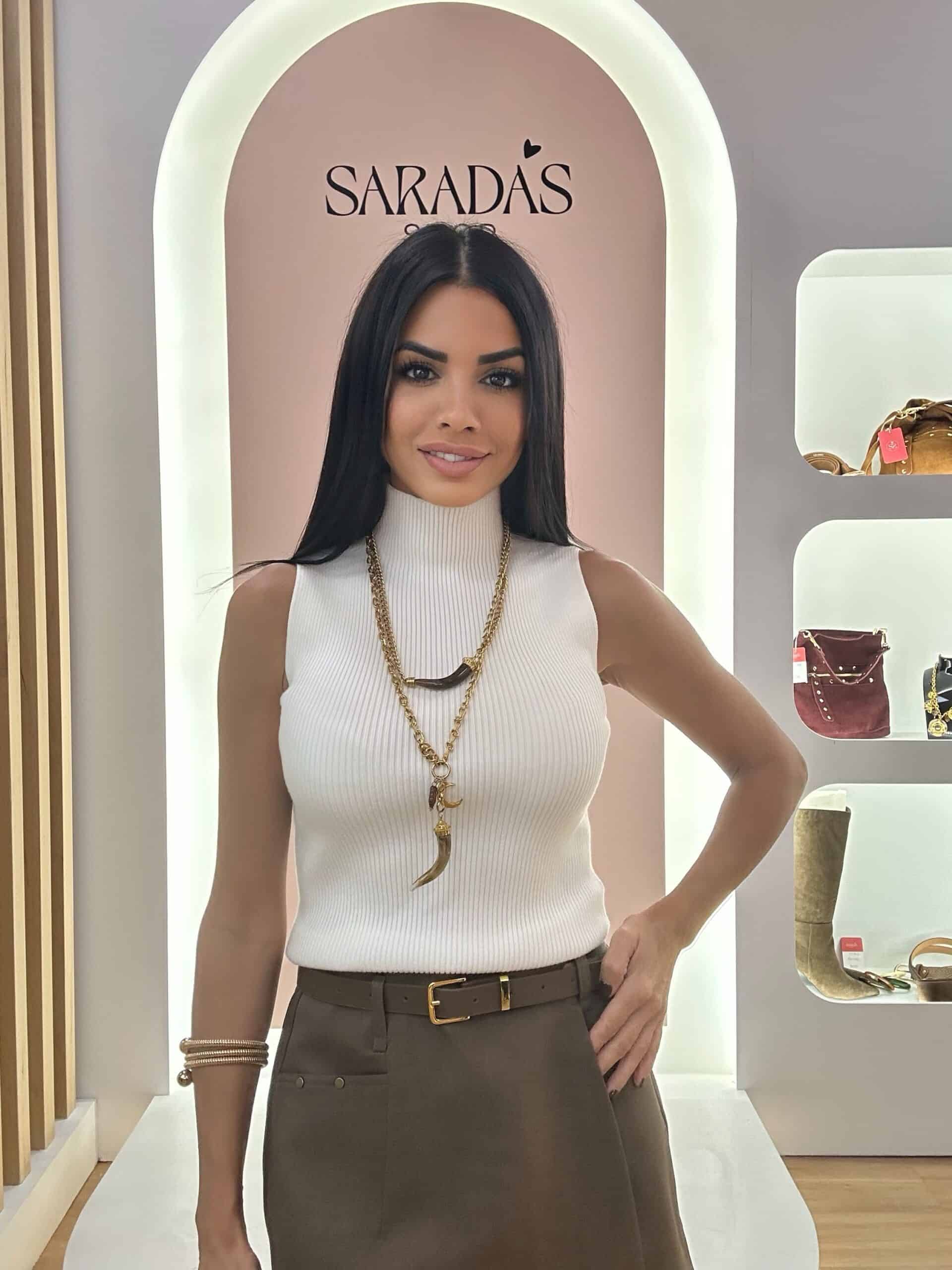 Top en punto elástico en color blanco, pequeño cuello alto, sin mangas, corte recto. Elige tu talla, S/M(34-36), M/L(38-40) 55%Viscosa. 45%Poliamida.
